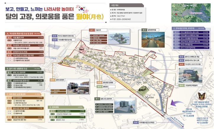 함평군은 2026년부터 2029년까지 월야면의 상징인 ‘달빛’과 의병 역사 자산을 중심으로 ▲역사문화 특화 거점 조성 ▲달이 내린 생활환경 조성 ▲달빛을 품은 상권 활성화 등 지역의 정체성을 강화한 관광·문화 거점을 조성하고 인접한 빛그린국가산업단지와 연계해 인구 유입도 촉진한다는 계획이다.