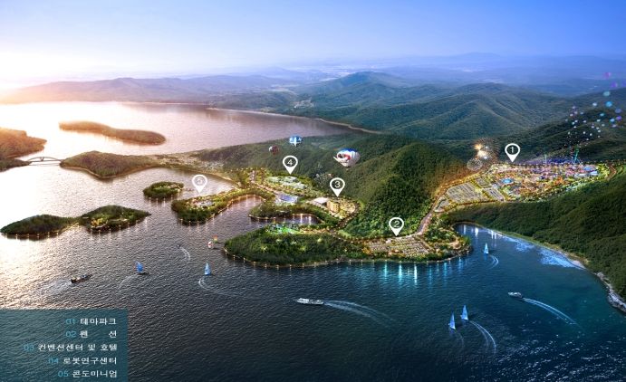 1단계 사업인 테마파크와 로봇연구센터, 컨벤션센터를 2019년 연이어 개장·개관했으나, 2단계 사업은 착공을 앞두고 펜션 부지 소유권 이전 문제로 민간사업자(대우컨소시엄)와 소송 등 갈등을 겪었다.