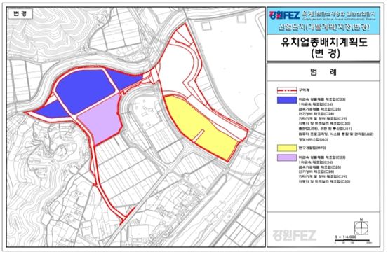강원경제자유구역청은 다양한 첨단산업의 입주 촉진을 위해 업종 특례지구로 지정된 구역에 대해 12월 23일 경제자유구역 개발계획 변경을 추진하여 유치 업종을 기존 7개에서 11개로 확대했다.