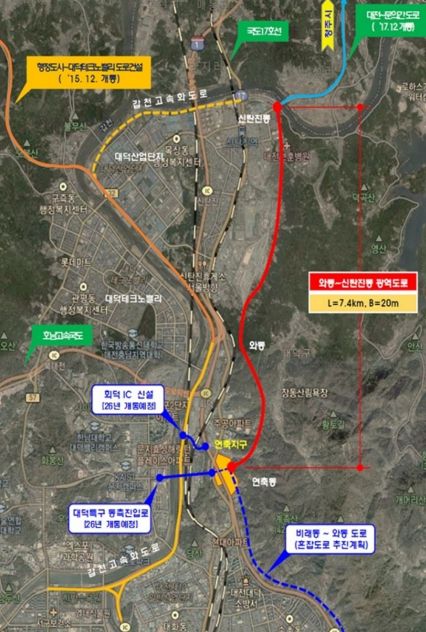 뉴한국방송뉴스통신사 신태공 기자 | 대전시는 대덕구 연축동~신탄진 용정초교를 잇는 ‘와동~신탄진동 도로개설사업’이 22일 기획재정부 재정사업평가위원회 심의를 거쳐 예비타당성조사 대상사업으로 선정됐다.