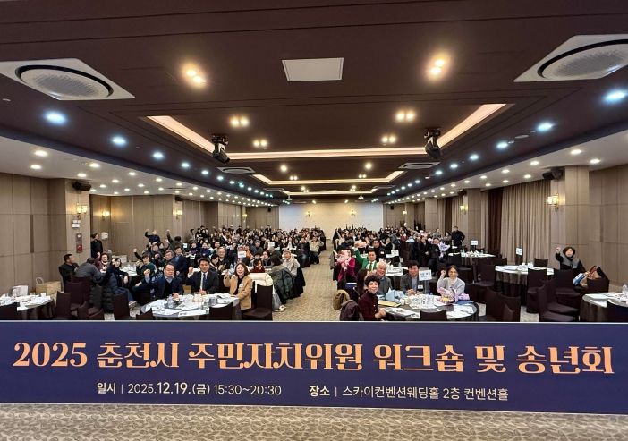 뉴한국방송뉴스통신사 양호선기자 기자 | 춘천시 주민자치협의회(회장 엄상필)는 한 해 주민자치 활동을 되돌아보고 새해 도약을 다짐하는 ‘2025 춘천시 주민자치위원 워크숍 및 송년회’를 개최했다.