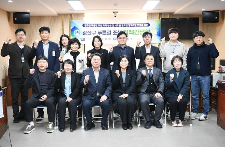 뉴한국방송뉴스통신사 김성의 기자 | 광산구의회 의원연구단체인 ‘광산구 푸른길 조성 연구회’가 23일 ‘광산구 푸른길 조성 정책간담회’를 개최했다.
