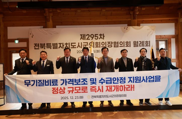 뉴한국방송뉴스통신사 신다은기자 기자 | 12월 23일, 무주 태권도원에서 열린 제295차 전북특별자치도 시군의회의장협의회(회장 남관우 전주시의회 의장) 월례회에서 순창군의회 손종석 의장이 건의한 '무기질비료 가격보조 및 수급안정 지원사업의 재개 촉구 건의안'을 채택했다.