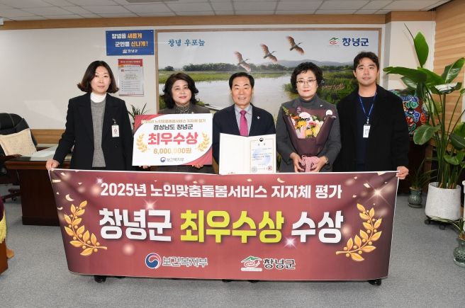 뉴한국방송뉴스통신사 신유철기자 기자 | 창녕군은 보건복지부 주관 ‘2025년 노인맞춤돌봄서비스 평가’에서 최우수상을 수상했다고 24일 밝혔다.