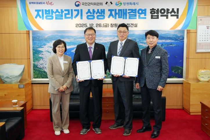 뉴한국방송뉴스통신사 신유철기자 기자 | 창원특례시는 26일 정부의 지방 활성화 정책의 일환으로 국민권익위원회와 자매결연 협약을 체결하고, 상호 협력을 통해 지역경제와 관광 활성화에 적극 나서기로 했다.