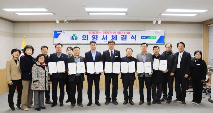 뉴한국방송뉴스통신사 신유철기자 기자 | 함양군은 30일, 군청 소회의실에서 ‘찾아가는 행복점빵’ 확산을 위해 농협중앙회 함양군지부와 5개 지역농협이 참여하는 사업 추진 의향서 체결식을 가졌다.