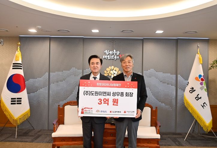 뉴한국방송뉴스통신사 신유철기자 기자 | 충남도는 31일 ㈜도원이엔씨로부터 이웃사랑 성금 3억원을 전달받았다고 밝혔다.