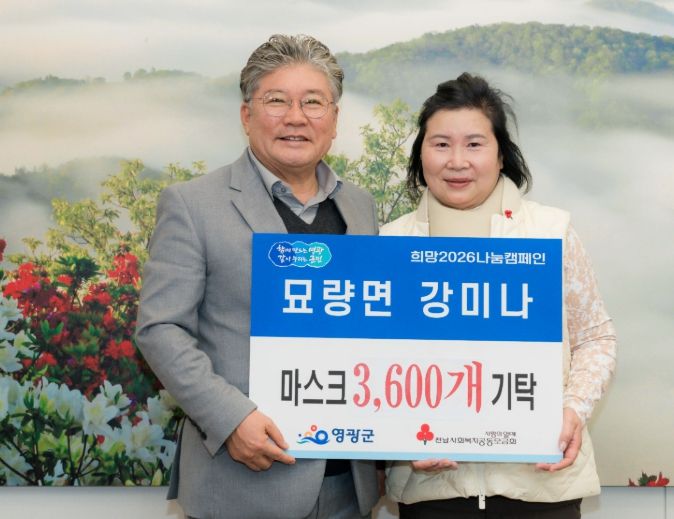 뉴한국방송뉴스통신사 신다은기자 기자 | 영광군은 2025년 12월 30일 묘량면에 거주하는 강미나 씨가 어려운 이웃들에게 전달해달라며 마스크 3,600개를 기탁해 희망2026나눔캠페인에 동참했다고 밝혔다.
