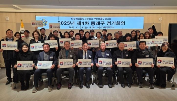 뉴한국방송뉴스통신사 신유철기자 기자 | 부산 동래구는 지난 12월 26일 오후 6시 동래구청 다목적실에서 민주평화통일자문회의 부산동래구협의회(협의회장 추한권)가 자문위원 39명이 참석한 가운데‘화해·협력의 남북 관계 재정립을 위한 정책 방향’을 주제로 2025년 제4차 정기회의를 개최했다고 밝혔다.