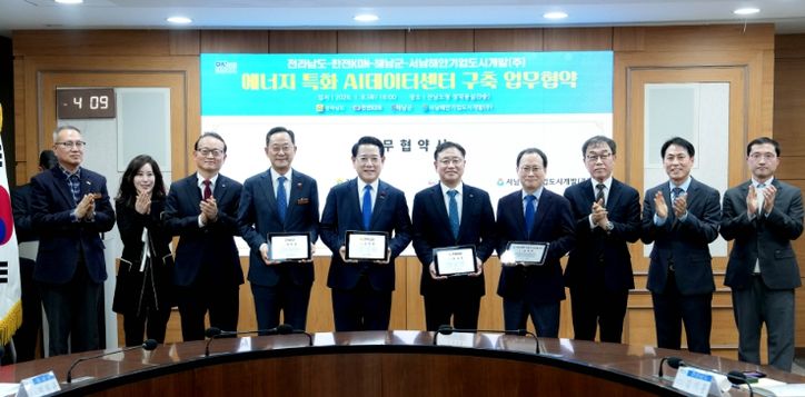 뉴한국방송뉴스통신사 신다은기자 기자 | 전라남도는 8일 한전KDN, 해남군, 서남해안기업도시개발㈜와 에너지 특화 AI 데이터센터 구축 및 AI·에너지 신산업 육성을 위한 업무협약을 했다.