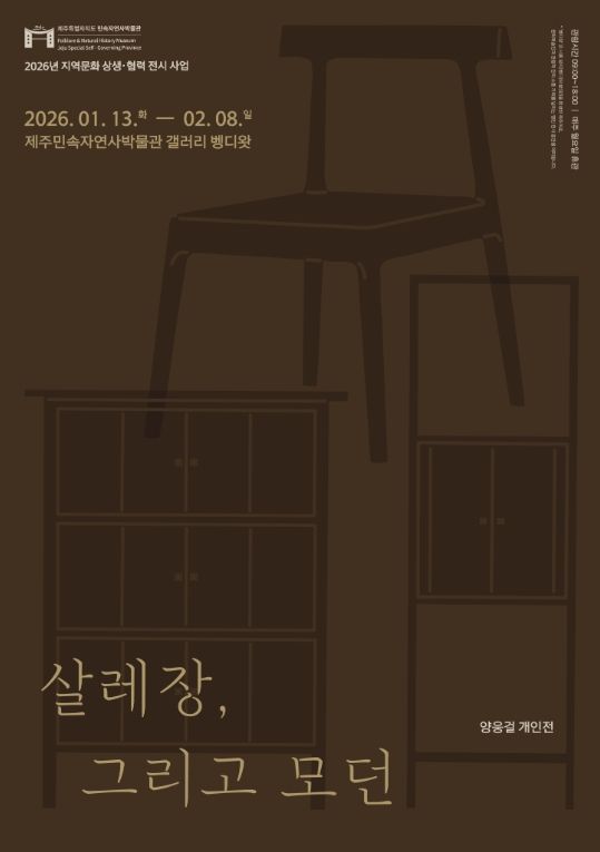 뉴한국방송뉴스통신사 신유철기자 기자 | 제주민속자연사박물관은 ‘지역문화 상생·협력 전시 사업’의 일환으로 1월 13일부터 2월 8일까지 갤러리 벵디왓에서 양웅걸 개인전 '살레장, 그리고 모던'을 개최한다.