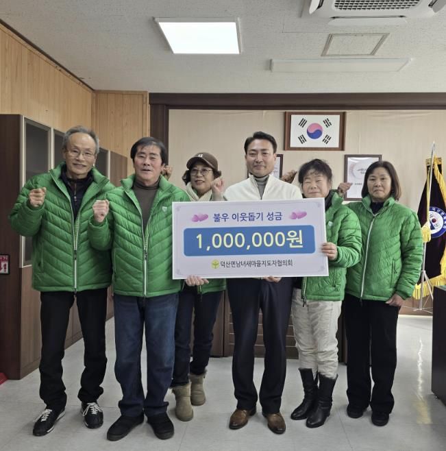 박찬만 덕산면장은 “지난해 수해 피해 등 어려운 여건 속에서도 이웃을 위해 소중한 성금을 기탁해주신 덕산면 남녀새마을지도자협의회에 감사드린다”며 “기탁된 성금은 충청남도 사회복지공동모금회를 통해 꼭 필요한 곳에 의미 있게 전달하겠다”고 말했다.