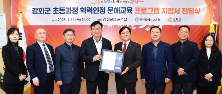 뉴한국방송뉴스통신사 신유철기자 기자 | 인천광역시교육청은 강화군 내 저학력 성인의 기초학력 지원을 위해, 강화군청을 ‘초등 학력인정 문해교육 프로그램’ 운영기관으로 지정하고, 16일 지정서를 전달했다.