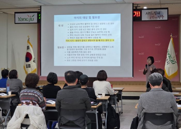뉴한국방송뉴스통신사 신유철기자 기자 | 양주시가 지난 16일 농업기술센터 내 교육장에서 도시농업 활성화와 전문 인력 양성을 위한 ‘도시텃밭전문가 교육’을 개최했다.