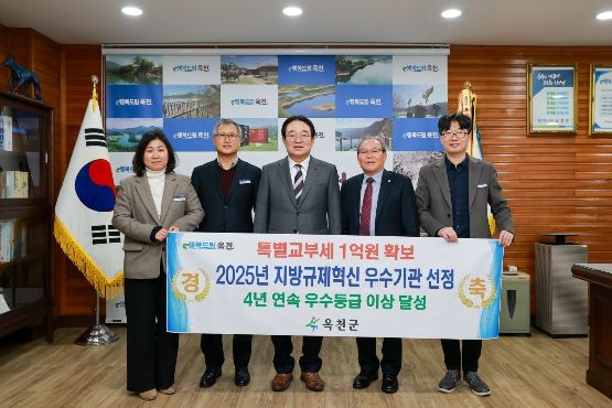 뉴한국방송뉴스통신사 권영분기자 기자 | 옥천군은 행정안전부가 주관하는‘2025년 지방규제혁신 추진성과 평가’에서 4년 연속 우수기관으로 선정돼 특별교부세 1억 원을 확보하는 성과를 거두었다고 밝혔다.