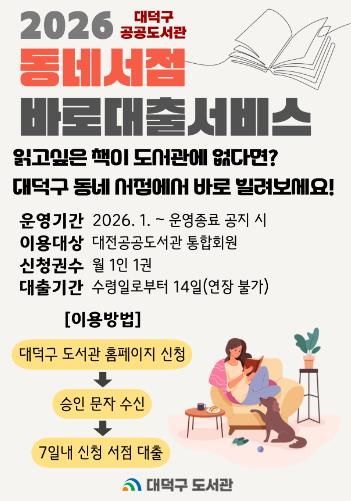 뉴한국방송뉴스통신사 신태공 기자 | 대전 대덕구는 2026년 공공도서관 ‘동네서점 바로대출 서비스’를 운영한다고 밝혔다.