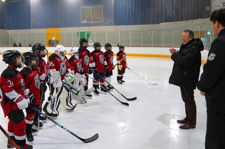 지난 주말 진행된 광주실내빙상장 훈련장 방문은 사전경기로 개최된 빙상 종목 격려에 이은 두 번째로 아이스하키 선수들과 지도자들을 직접 만나 응원하고 사기 진작을 위해 마련됐다.