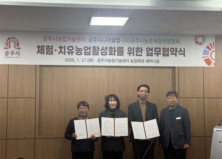 김희영 공주시농업기술센터 소장은 “이번 협약은 어르신들의 경험과 역량을 체험·치유농업과 연결해 농촌에 활력을 더하는 계기가 될 것이다. 앞으로도 시니어 사회참여 확대와 농촌 활성화를 위한 체험·치유농업 정책을 지속적으로 추진하겠다”고 말했다.