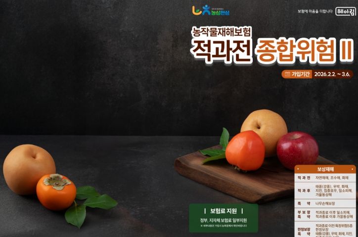 한편, 올해 농작물재해보험 가입 대상 품목은 총 76여 개로, 재배 시기에 맞춰 가입 기간이 운영되며 자세한 사항은 NH농협손해보험으로 문의하면 된다.