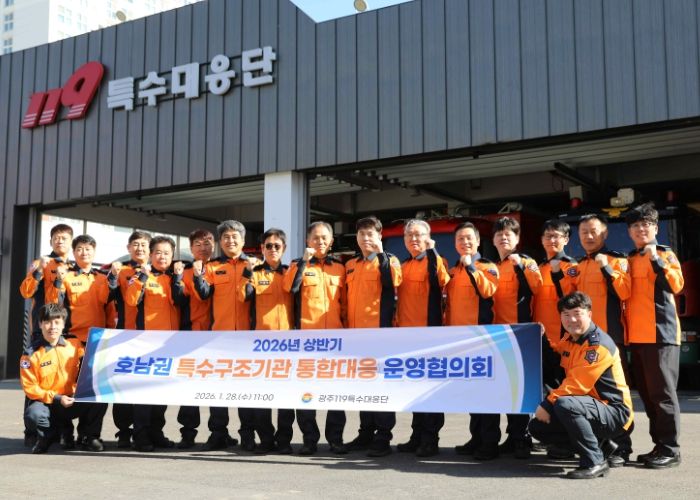 뉴한국방송뉴스통신사 김성의 기자 | 광주광역시 119특수대응단은 28일 대응단 작전실에서 ‘2026년 상반기 호남권 특수구조기관 통합대응 운영협의회’를 개최했다.