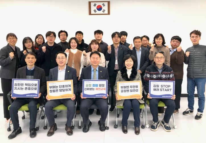 '위로부터! 스스로! 다같이! 청렴'이라는 슬로건 아래 진행된 이번 행사는 반부패·청렴 실천 서약, 청렴 자가 진단, 교육장 청렴 특강 순으로 진행됐다.