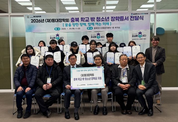 이어 김자중 충청북도청소년종합진흥원장은 “지역 청소년들을 위해 소중한 마음을 모아주신 등대장학회에 감사드리며, 진흥원 역시 학교 밖 청소년들이 소외되지 않고 각자의 재능을 꽃피울 수 있도록 촘촘한 지원망을 구축하는 데 최선을 다하겠다”고 화답했다.