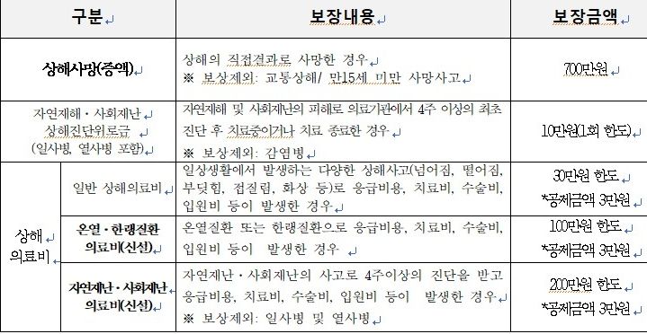 올해는 각종 재난 발생에 대비해 보장항목을 확대하여 온열·한랭질환 의료비(100만 원 한도)와 자연재난·사회재난 의료비(200만 원 한도)를 새롭게 추가했다.