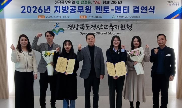뉴한국방송뉴스통신사 신유철기자 기자 | 경산교육지원청 정수권 교육장은 2일 오전 11시부터 교육지원청 5층 대회의실에서 신규 공무원 2명과 선배공무원들이 참석한 가운데 지방공무원 후견인제(멘토-멘티) 결연식을 개최했다.