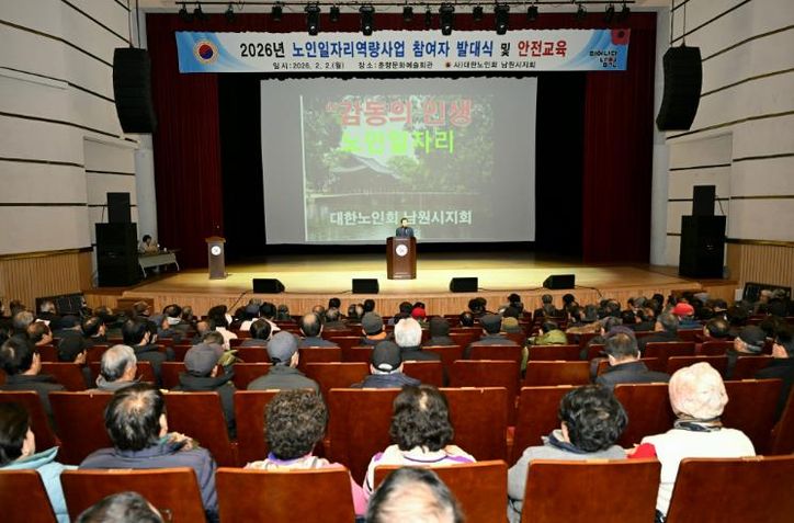 뉴한국방송뉴스통신사 김성의 기자 | 남원시는 2월 2일 남원춘향문화예술회관 대공연장에서 2026년 노인일자리사업(역량활용) 참여자 발대식 및 안전교육을 실시했다.