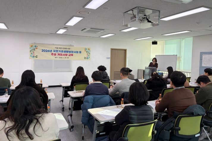 뉴한국방송뉴스통신사 신유철기자 기자 | 부산 사하구는 최근 개정된 복지 분야 주요 지침을 현장에 신속하고 정확하게 적용하기 위해, 지난 1월 29일 사하구청 제2청사에서 사회복지 담당자를 대상으로 '2026년 복지분야 등 주요 개정 사항'에 대한 직원 교육을 실시했다.
