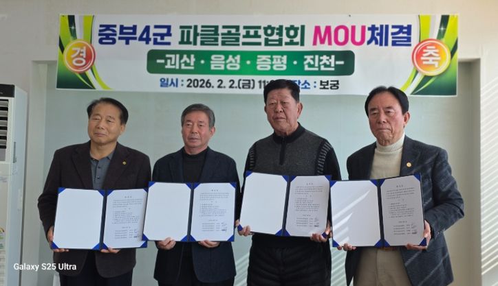 지난 2일, 증평·진천·음성·괴산 등 충북 4개 군 파크골프협회는 협회장 간 자발적 논의를 통해 파크골프 발전을 위한 협약을 체결했다.