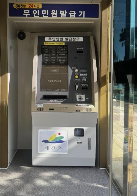뉴한국방송뉴스통신사 신태공 기자 | 예산군은 지난 26일 예산군청(실외)과 예산읍(실외)에 설치된 노후 무인민원발급기 2대를 교체했다.