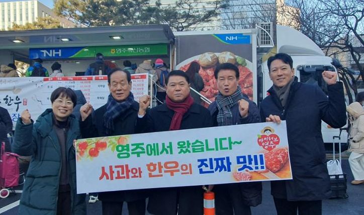 뉴한국방송뉴스통신사 신유철기자 기자 | 영주시는 지난 3일 서울 강남구청 주차장에서 열린 ‘2026 설맞이 강남구 직거래 장터’에 참가해 영주한우와 영주사과를 선보이며 서울 시민들로부터 큰 관심을 받았다고 밝혔다.