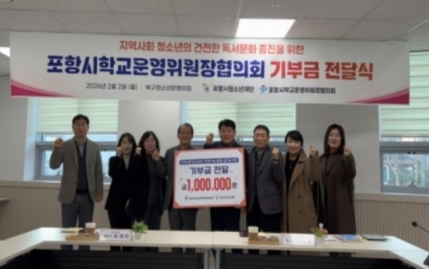 최제민 포항시청소년재단 대표이사는 “지역사회 청소년들을 위해 뜻을 모아주신 포항시학교운영위원장협의회에 깊이 감사드린다”며 “이번 기부는 청소년들의 학습 역량 향상과 건전한 독서문화 형성에 큰 도움이 될 것으로 기대되며, 청소년들의 건강한 성장과 꿈을 지원하는 데 소중히 사용하겠다”고 말했다.