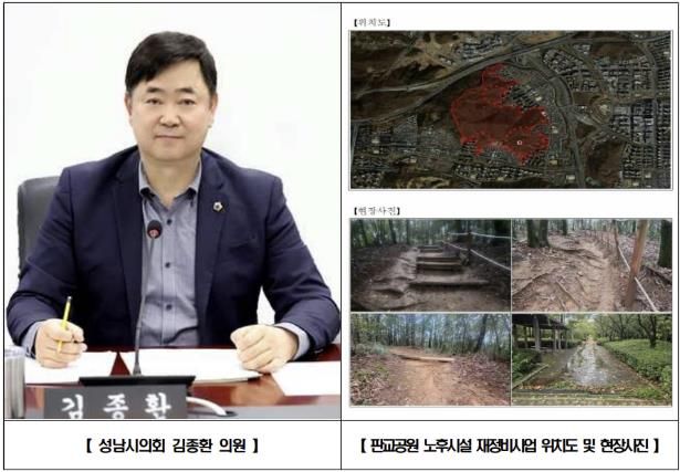 뉴한국방송뉴스통신사 신유철기자 기자 | 성남시의회 국민의힘 김종환 의원(판교·백현·운중·대장동, 예산결산특별위원장)은 분당구 판교동 판교공원 일원 노후 산책로와 바닥포장 등을 정비하는 재정비공사가 본격 추진됨을 밝혔다.