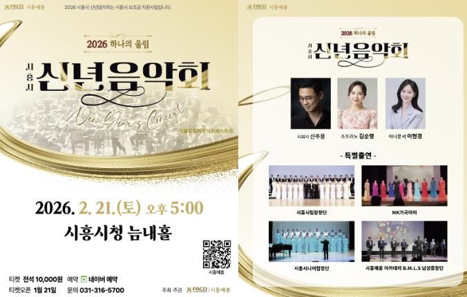 뉴한국방송뉴스통신사 신유철기자 기자 | 시흥시가 지원하고 (사)한국예술문화단체총연합회 시흥지회에서 주관하는 ‘2026 시흥시 신년음악회- 하나의 울림’이 오는 2월 21일 오후 5시, 시청 늠내홀에서 개최된다.