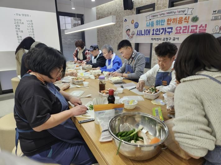 뉴한국방송뉴스통신사 신유철기자 기자 | 부산 금정구는 2026년 2월 중 2회기에 걸쳐 증가하는 신노년 1인가구 대상 일상에서 균형 잡힌 한 끼 식사를 위한 영양 교육 및 요리 실습 등 ‘하하 시니어 1인가구 요리교실’을 금정구 하하센터(금사동 소재)에서 진행했다.