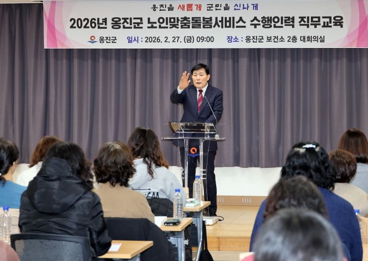 뉴한국방송뉴스통신사 신유철기자 기자 | 옹진군은 지난 27일부터 3월 6일까지 군청 6층 중회의실에서 노인맞춤돌봄서비스 수행인력의 전문성 강화를 위한 '2026년 노인맞춤돌봄서비스 사업 직무교육'을 2회에 걸쳐 실시한다고 밝혔다.