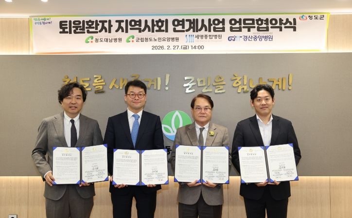 협약식에는 청도대남병원, 군립청도노인요양병원, 경산중앙병원, 세명종합병원 등 관계기관 대표 10여 명이 참석해 사업 추진 방향을 공유하고 기관 간 협력체계 구축에 뜻을 모았다.