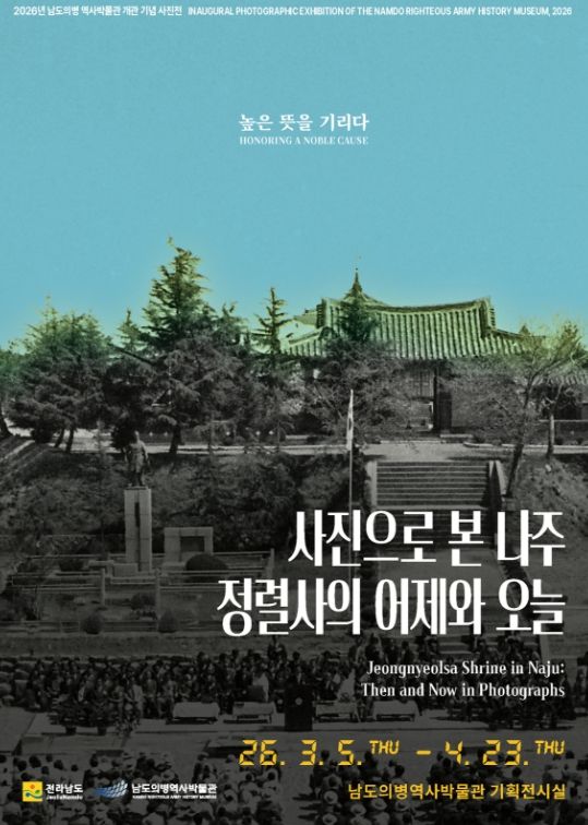 뉴한국방송뉴스통신사 신다은기자 기자 | 남도의병역사박물관은 개관을 기념해 5일부터 4월 23일까지 ‘사진으로 본 나주 정렬사의 어제와 오늘’ 특별전을 열어 임진왜란 때 호남 첫 의병장인 김천일 의병장의 유적과 나주 지역민들의 ‘의(義)’를 조명한다.