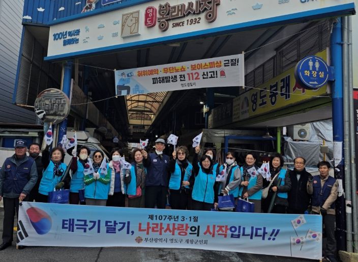 뉴한국방송뉴스통신사 신유철기자 기자 | 영도구 재향군인회와 관내 보훈단체는 제107주년 3·1절을 기념하고 호국영령의 숭고한 정신을 기리기 위해 지난 2월 28일부터 3월 1일까지 양일간 태극기 1,000장을 배부하고 홍보하는 ‘나라사랑 국기 달기 행사’를 개최했다고 밝혔다.