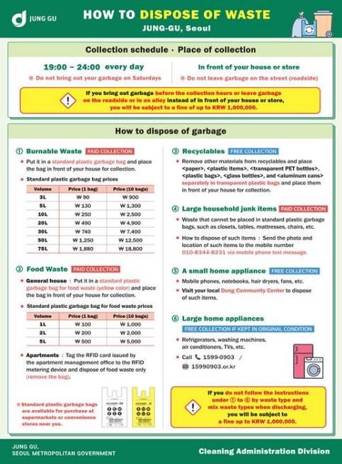 특히, 유학생들이 실수하기 쉬운 ‘토요일 및 매월 마지막 주 수요일 배출 금지’ 규정과 배출방법 위반에 따른 과태료 기준 등 주의사항을 집중적으로 다뤘다.