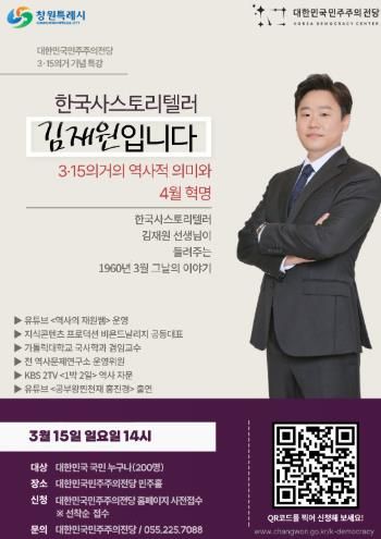 이번 특강은 가톨릭대학교 국사학과 겸임교수인 김재원 교수가 강연을 맡아 3·15의거의 역사적 의미와 4·19혁명으로 이어진 민주화의 흐름을 시민의 눈높이에 맞춰 쉽게 풀어낼 예정이다.