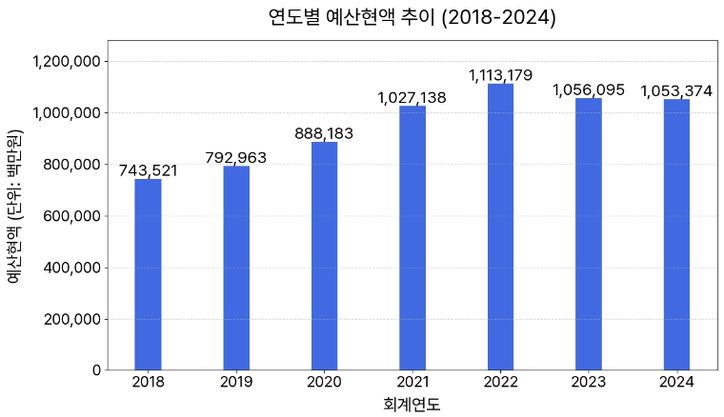 군의 재정 규모는 교부세 및 보조금 확보, 각종 대규모 공모사업 선정 등 체계적인 재정 전략에 힘입어 2018년 7,435억 원에서 2024년 1조 534억 원으로 급성장하면서, 이에 따른 사고이월 또는 계속비 이월액이 증가하고 있다.