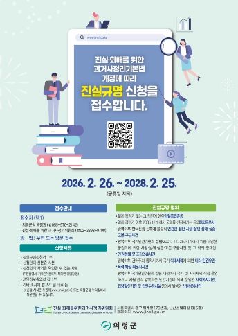 뉴한국방송뉴스통신사 신유철기자 기자 | 의령군은 '진실·화해를 위한 과거사정리 기본법' 시행에 따라 2026년 2월 26일부터 과거사 진실규명 신청을 받고 있다고 밝혔다.