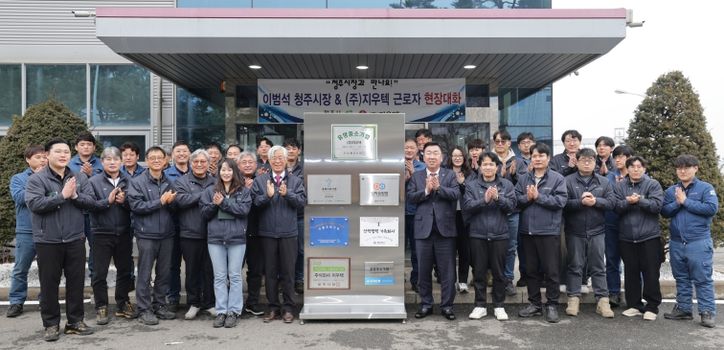 뉴한국방송뉴스통신사 권영분기자 기자 | 청주시는 6일 유망중소기업으로 선정된 ㈜지우텍을 방문해 현장 근로자들의 노고를 격려하고 의견을 청취하는 ‘기업 현장 소통의 날’ 행사를 개최했다.
