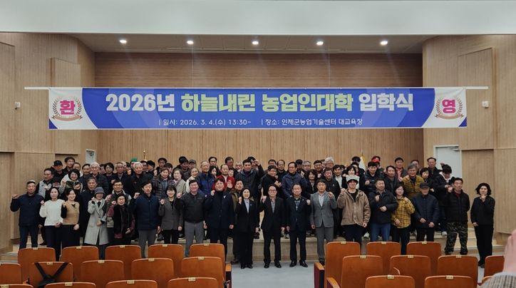 인제군은 지난 3월 4일 인제군농업기술센터 대교육장에서 ‘2026 하늘내린농업인대학’ 입학식을 열고 올해 교육과정 운영에 들어갔다고 밝혔다.