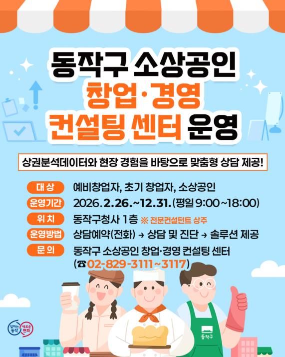 뉴한국방송뉴스통신사 신유철기자 기자 | 동작구가 지난 3일부터 전국 기초지자체 최초로 관내 소상공인을 위한 창업·경영 컨설팅 센터를 직영 운영한다고 밝혔다.