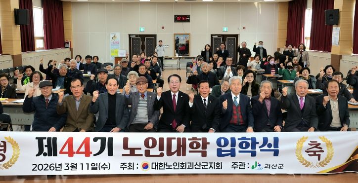 뉴한국방송뉴스통신사 권영분기자 기자 | 충북 괴산군은 11일 노인회 지회 3층 회의실에서 송인헌 괴산군수, 노인회 관계자, 이명남 학생대표 외 39명의 학생이 참석해 제44회 노인대학 입학식을 개최했다고 밝혔다.
