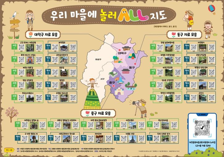 ‘우리 마을에 놀러올(ALL) 지도’는 대전 동구와 중구, 대덕구 등 동부 지역의 자연생태와 역사 탐방 체험 장소를 한눈에 확인할 수 있도록 제작된 마을 교육 지도다. 대전동부교육지원청은 지난해 해당 지도를 디지털 파일 형태로 보급한 데 이어, 올해는 체험학습 현장에서의 활용도를 높이기 위해 인쇄물 형태로 추가 보급하게 됐다.